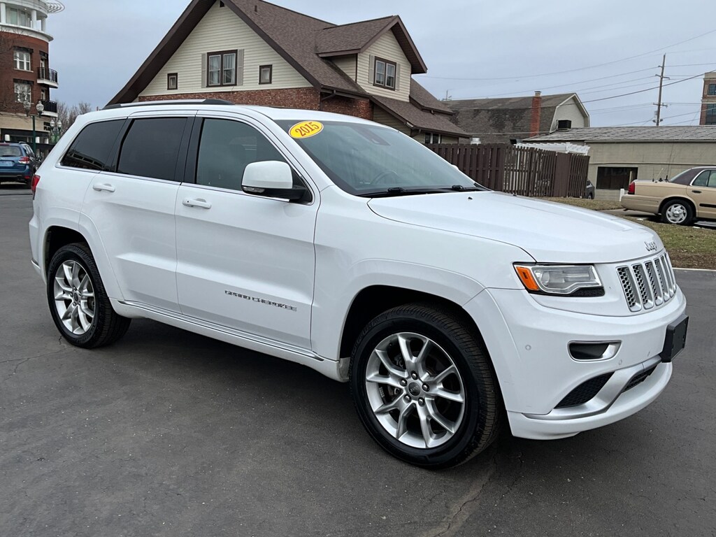 This 2015 Jeep Grand Cherokee Summit is a well-maintained vehicle with 124,028 miles. Finished in White, it comes equipped with Leather Seats, Sunroof, Navigation, Backup Camera, Heated Seats, Bluetooth, Remote Start, 4WD. The CARFAX report shows it includes regular service records. Don't wait, this Grand Cherokee is ready for its next owner.