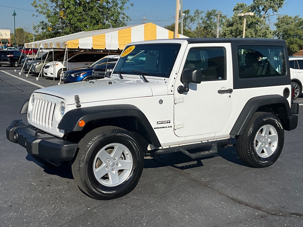 This 2016 Jeep Wrangler Sport, comes equipped with some nice features, these include an AUX port, cruise control, running boards, air conditioning, AM/FM stereo radio, and a CD player. The CARFAX report for this vehicle shows that it has had NO damages or accidents to it and it has 9 service history records. Come in or call today about this 2016 Jeep Wrangler Sport!
